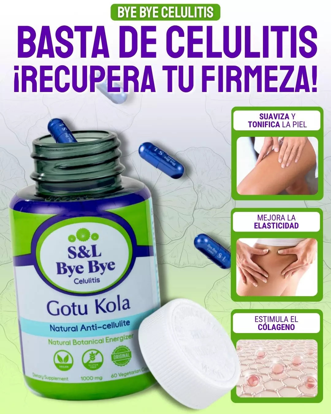 Bye Bye Celulitis® es un suplemento avanzado con Centella Asiática que trabaja desde adentro para mejorar la apariencia de la piel. Su potente fórmula reduce visiblemente la celulitis y mejora la elasticidad, mientras que sus ingredientes naturales hidratan, regeneran y estimulan la producción de colágeno. Además, favorece la circulación y elimina toxinas, reduciendo la retención de líquidos para una piel más lisa y saludable. Resultados visibles en solo 30 días, sin complicaciones. ¡Dale a tu cuerpo el cuidado que se merece!