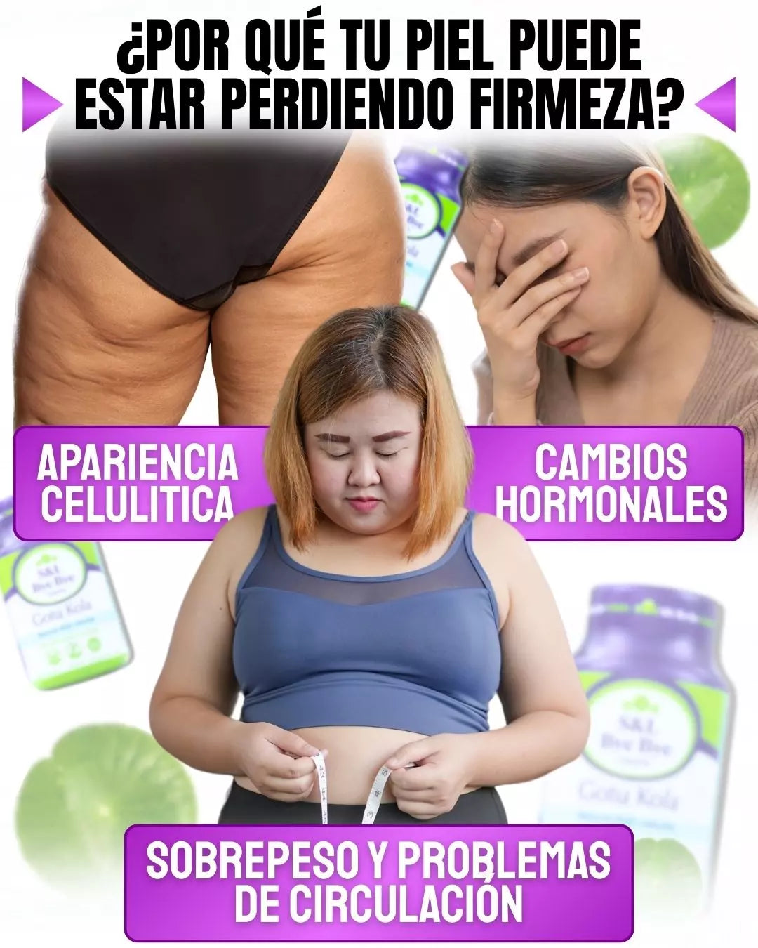 En Colombia, el 75% de las personas luchan contra la celulitis y la piel flácida. La acumulación de grasa, la retención de líquidos y una mala circulación pueden hacer que la piel luzca irregular y sin firmeza. Estos problemas afectan la confianza y el bienestar, haciendo que encontrar una solución efectiva sea una prioridad. Bye Bye Celulitis es la respuesta: una fórmula natural que reduce la celulitis, mejora la firmeza y realza la belleza de tu piel desde adentro.